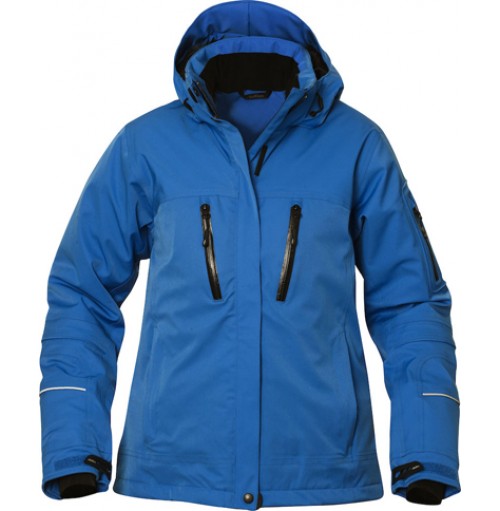 avtagbar huva och snölås. Förböjda ärmar, dold mudd i ärmslut