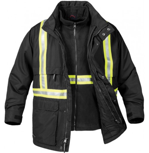 Arbetskläder klar och utformad med säkerheten i åtanke, denna all-säsongen högpresterande D / W / R-behandlade 3-in-1 outshell erbjuder en zip-in/zip-out polar fleece liner, och reflekterande tejpning för maximal synlighet.