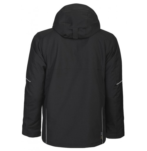 Lager 3-jacka i funktionellt softshellmaterial som är vind- och vattenavvisande. Kviltat vadderat foder. Två bröstfickor, den vänstramed invändig telefonficka. Fäste för ID-kortshållare. Två innerfickor med blixtlås varav en större för tex dokument. Två sidfickor. En ärmficka på vänster ärm. Innerficka med hål anpassat för handsfree på vänster sida. Ventilationsdragkedjor under ärmarna. Dragsko i midjan. Reglerbara ärmslut. Förlängd rygg för bästa komfort. Reflexpassportaler på ärmar och rygg. Avtagbar justerbar huva. Fleecefodrad krage och sidofickor för ökad komfort.