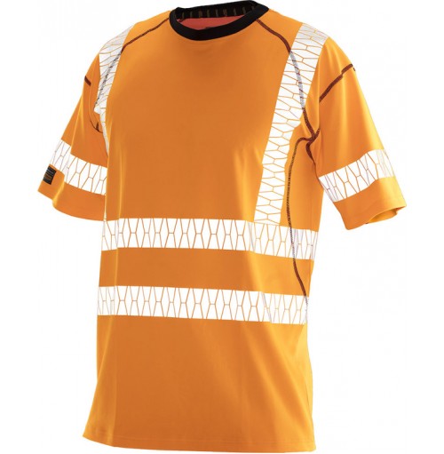 T-shirt i permanent wicking polyester som transporterar bort fukt från huden och håller dig torr. Tyget är speciellt konstruerat för att skydda mot solens ultravioletta strålar, certifierat UPF 40+. T-shirten har bra passform som ger bra rörelsefrihet. Svarta detaljer i halsringningen gör smuts mindre synlig. Flatlocksömmar i svart och printad etikett i nacken. Påvärmda reflexer utan sömmar i Jobman design. Reflexer över axlarna för ökad synbarhet.
